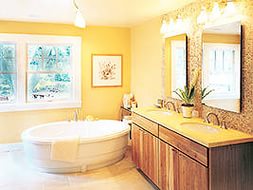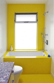 Солнечный желтый цвет в ванной комнате
