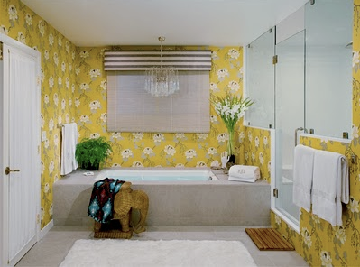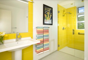 Пустите в вашу ванную комнату немного солнца и она окажется удивительно органичной. Совсем необязательно все помещение облицовывать желтой плиткой, достаточно всего лишь не большого пятнышка, и ванная комната будет действовать как настоящий афродизиак. Если в помещении ванной совсем нет естественного освещения, то именно желтая плитка будет наиболее уместной.